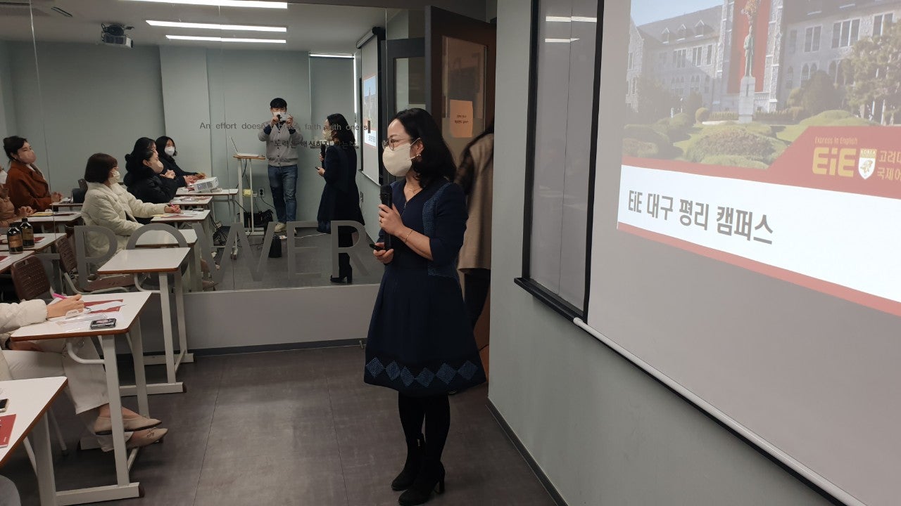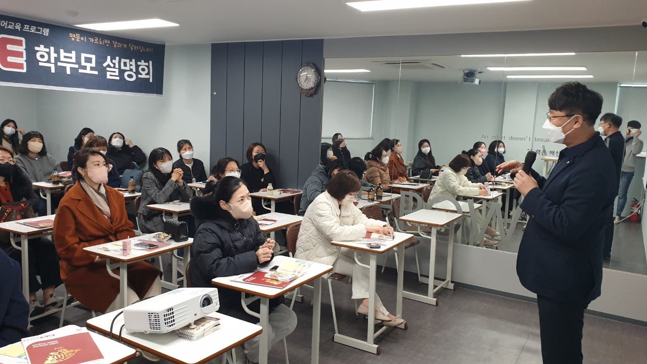 다음으로 조기제 원장님께서는 이제까지 오랜시간 교육계에 있으면서 느낀 EiE가 정답인 이유, 학생들을 가르쳐오시며 이룬 성과를 소개해주셨습니다. 이어 장경회 부원장님께서 EiE 대구 평리 캠퍼스의 실질적 운영방침과 방향성을 말씀해주셨습니다.