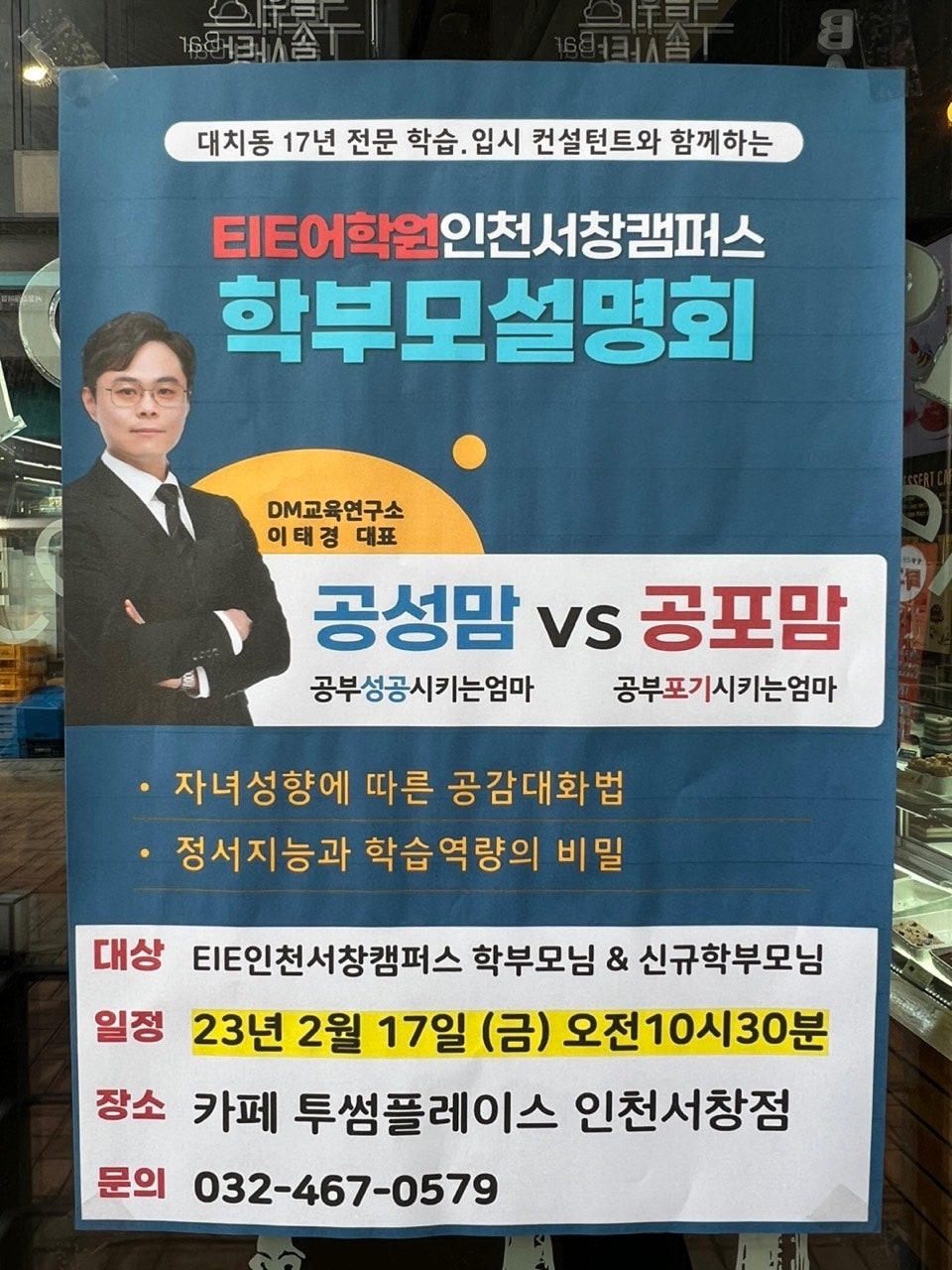 신학기를 대비하여 재원생 학부모 대상 명사초청 학부모 설명회로 진행되었으며 명사로는 DM교육연구소 이태경 소장께서 수고해주셨습니다.